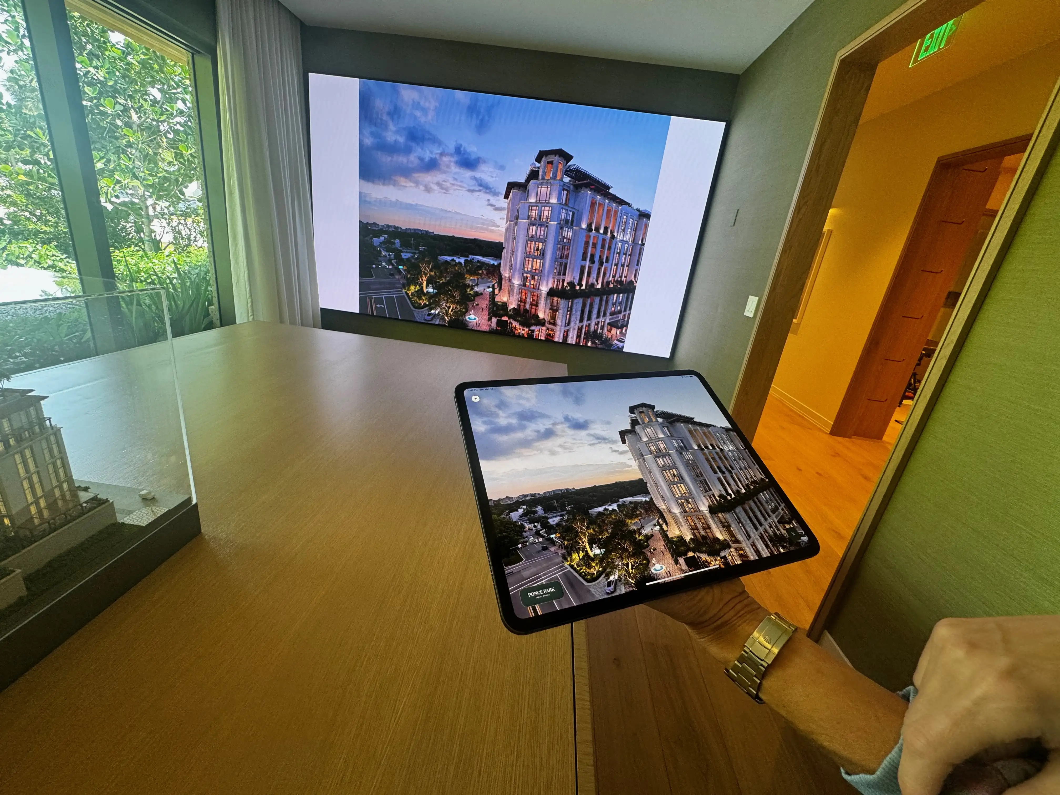 The installation strikes the perfect balance between technological sophistication and timeless elegance. Coral Gables buyers respond to the personal, guided experience that tablet control enables. Sales teams can adapt presentations in real time based on buyer interests, creating a bespoke experience that matches Ponce Park's positioning.